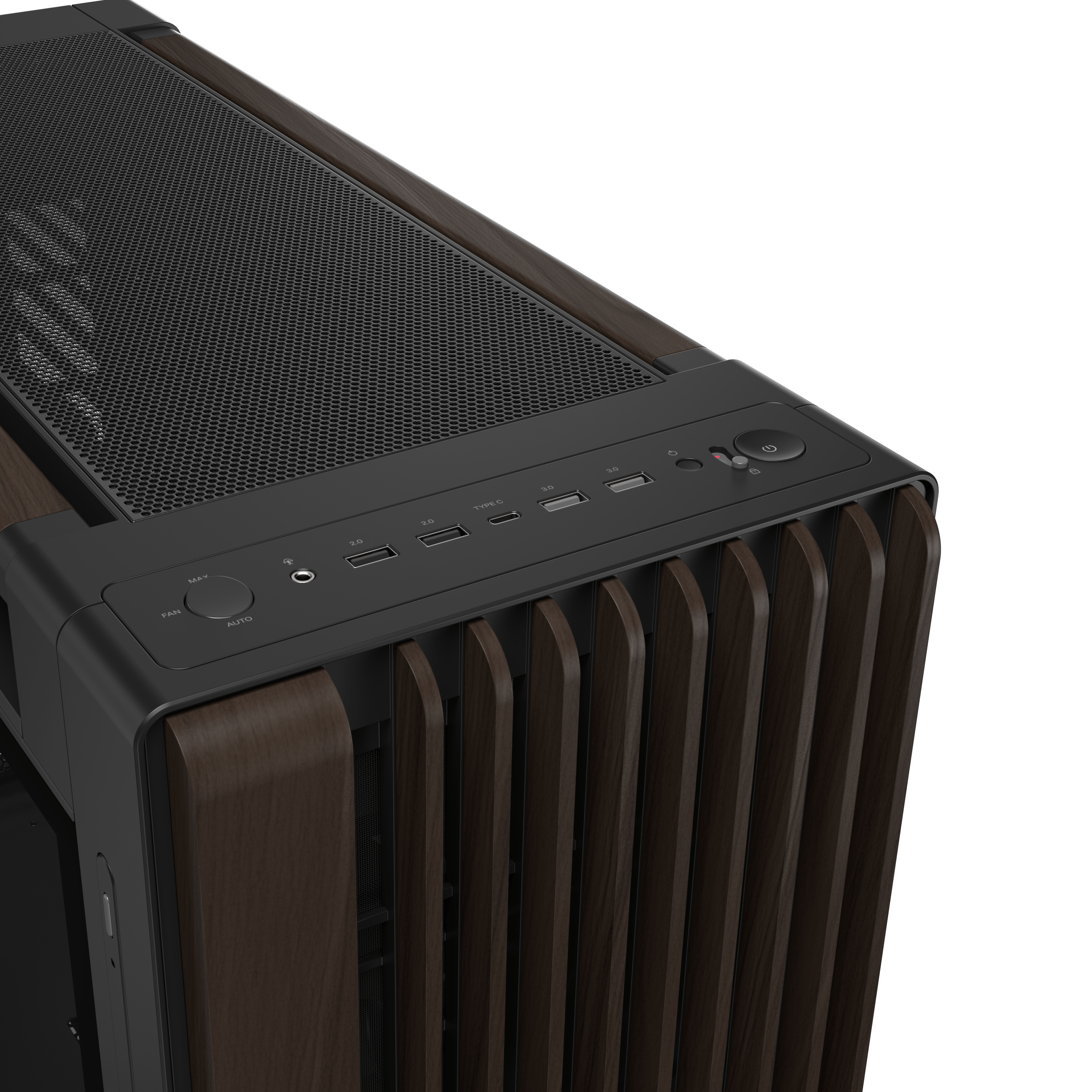 These wooden front panel elements go beyond aesthetics. Their open-grille arrangement ensures a case gets unimpeded airflow, keeping internal components healthy.