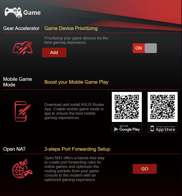 To utilize the Game Port feature, ensure your computer is connected directly to LAN Port 5 & 6, designated as the Gaming Port. Game Acceleration optimizes your connection by routing you through the shortest path to the fastest server, helping you achieve the lowest possible ping for a smoother gaming experience. However, we never try this feature before.