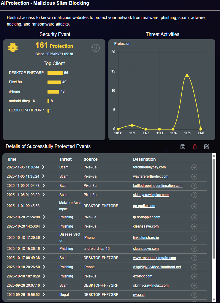 We tested ASUS Ai Protection from 21st September 2025 to 6th November 2025, and it proved to be the best among all router protection features we’ve evaluated across different brands. Plus, Ai Protection is free forever, adding even more value to ASUS routers.