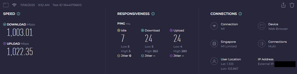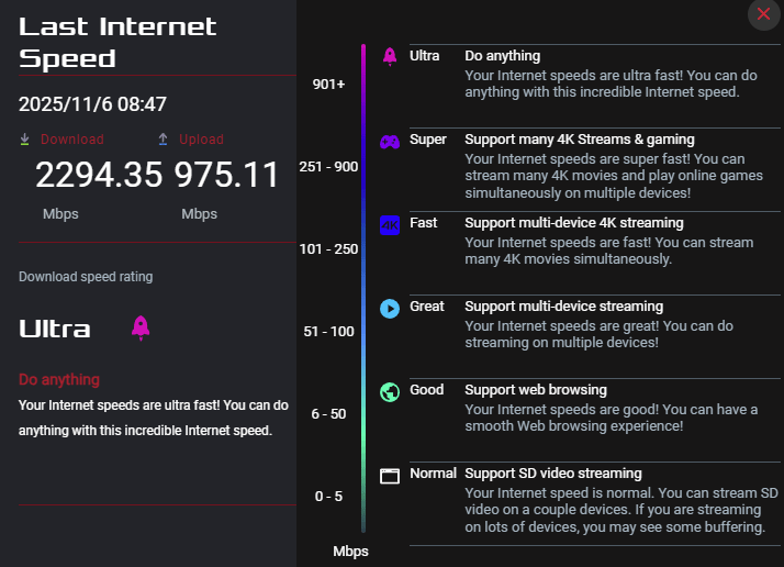 With Singapore telcos now offering 10Gbps fiber broadband plans at increasingly affordable prices, users may find the ROG STRIX GS-BE18000 less future-proof in terms of wired connectivity. Its 2.5Gbps WAN port limits full utilization of higher-tier plans. However, this router remains an excellent choice for users on 1Gbps or 2.5Gbps plans, delivering outstanding WiFi 7 wireless performance, low latency, and robust network stability suitable for most home and gaming environments.