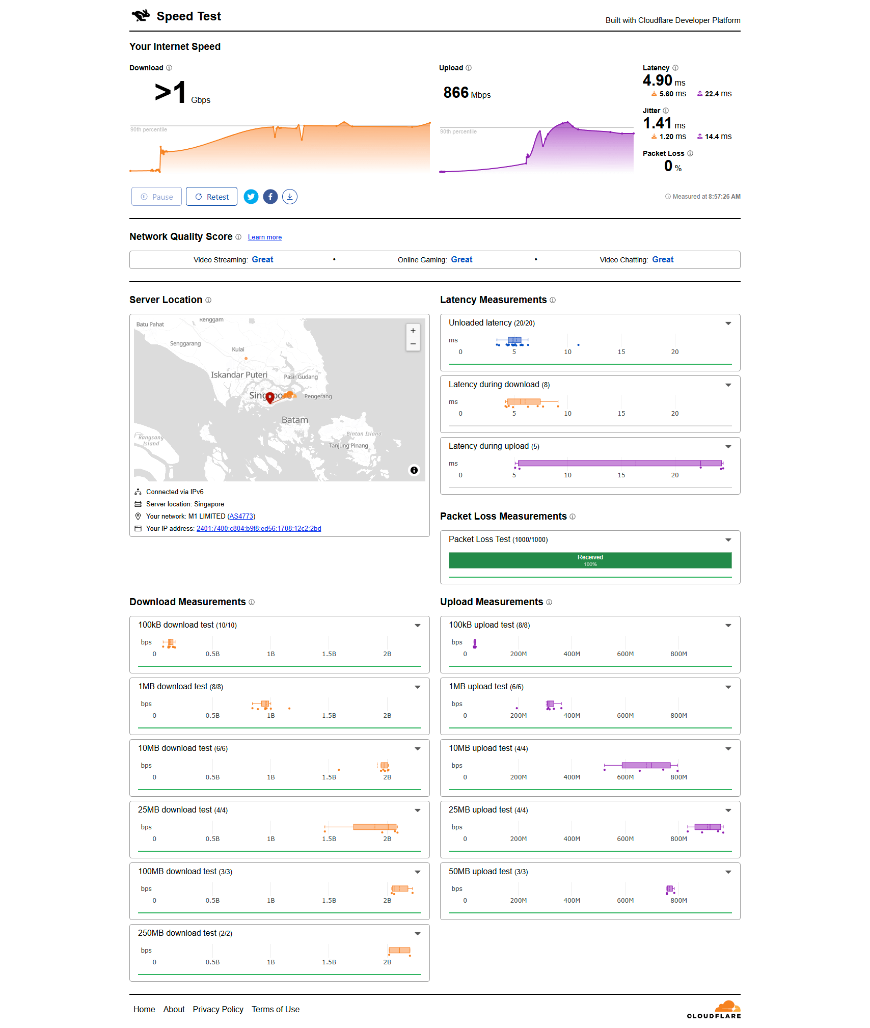 With Singapore telcos now offering 10Gbps fiber broadband plans at increasingly affordable prices, users may find the ROG STRIX GS-BE18000 less future-proof in terms of wired connectivity. Its 2.5Gbps WAN port limits full utilization of higher-tier plans. However, this router remains an excellent choice for users on 1Gbps or 2.5Gbps plans, delivering outstanding WiFi 7 wireless performance, low latency, and robust network stability suitable for most home and gaming environments.